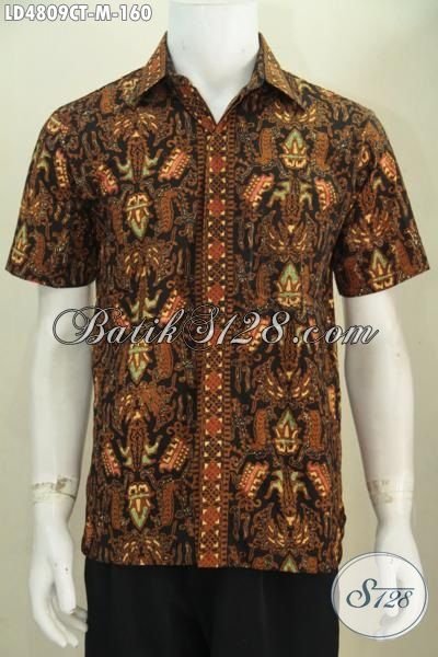 Baju Kemeja Batik Klasik Modern Buatan Solo, Hem Batik Cap Tulis Lengan Pendek Motif Elegan Model Berkelas Tampil Makin Tampan Maksimal [LD4809CT-M]