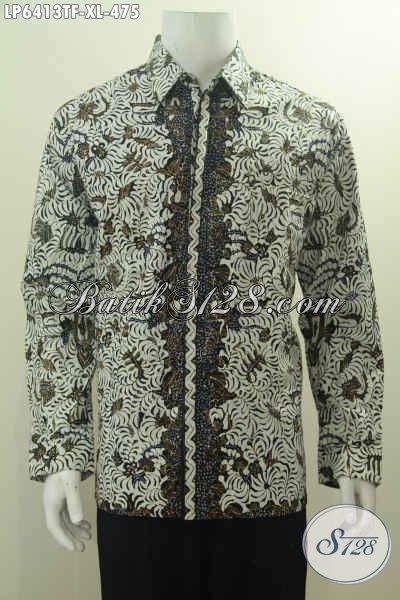 Baju Kemeja Batik Lengan Panjang Elegan Berkelas Motif Sawat Pengantin Khas Cirebonan, Busana Batik Keren Kwalitas Premium Proses Tulis Daleman Full Furing Lebih Nyaman Dan Mewah [LP6413TF-XL]
