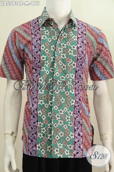 Baju Kemeja Batik Lengan Pendek Keren Motif Kombinasi, Baju Batik Keren Proses Cap Tulis Untuk Kerja Dan Acara Pesta Tampil Lebih Ganteng Maksimal [LD5393CT-M]