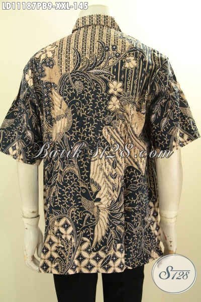 Baju Kemeja Batik Lengan Pendek Size XXL, Hem Batik Pria Gemuk Motif Bagus Kekinian Proses Printing Cabut, Bikin Penampilan Tampan Menawan [LD11187PB-XXL]