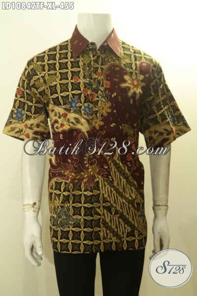 Baju Kemeja Batik Model Lengan Pendek Motif Bagus Dan Mewah, Hem Batik Tulis Solo Premium Pake Furing, Menujang Penampilan Gagah Berwibawa Setiap Hari [LD10842TF-XL]
