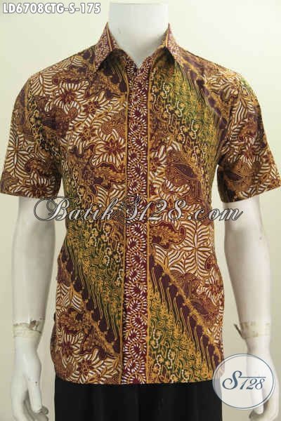 Baju Kemeja Batik Model Terbaru, Hem Batik Lengan Pendek Motif Bagus Proses Cap Tulis Soga Bahan Adem Harga 175K [LD6708CTG-S]