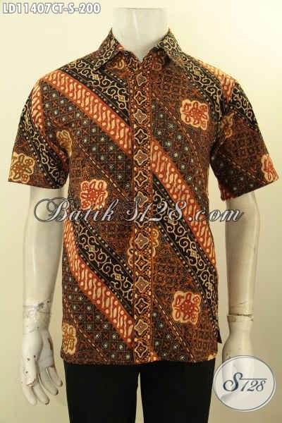 Baju Kemeja Batik Modis Motif Klasik, Pakaian Batik Solo Asli Proses Cap Tulis Desain Elegan Dan Keren Lengan Pendek, Pas Banget Untuk Kerja Kantoran [LD11407CT-S]