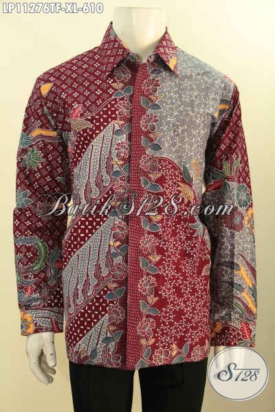 Baju Kemeja Batik Pria Eksekutif Model Lengan Panjang, Baju Batik Halus Motif Klasik Warna Merah Tulis Asli Daleman Full Furing Hanya 600 Ribuan, Cocok Untuk Rapat Dan Acara Formal Linnya [LP11276TF-XL]