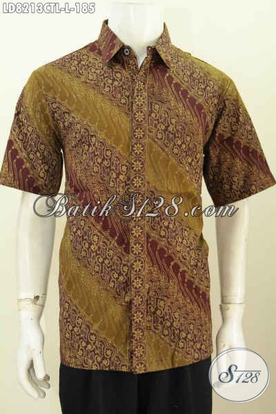 Baju Kemeja Batik Solo Elegan Dan Mewah, Pakaian Batik Jawa Tengah Halus Cap Tulis Lasem Desain Modern Pas Banget Buat Ke Kantor [LD8213CTL-L]