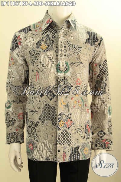 Baju Kemeja Batik Solo Istimewa Lengan Panjang Nan Berkelas, Pakaian Batik Motif Klasik Sekarjagad Bahan Adem Proses Kombinasi Tulis, Cocok Untuk Acara Resmi [LP11051BT-L]