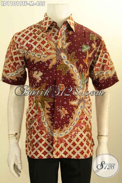 Baju Kemeja Batik Tulis Lengan Pendek Untuk Penampilan Gagah Dan Tampan, Pakaian Batik Modis Daleman Full Furing Motif Terkini, Pas Buat Kerja Dan Acara Resmi [LD11019TF-M]