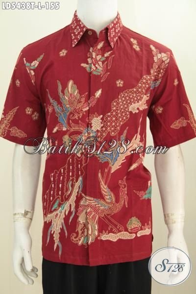 Baju Kemeja Batik Tulis Lengan Pendek Warna Merah Motif Keren Banget, Busana Batik Cowok Masa Kini Tampil Stylish Hanya Dengan 100 Ribuan [LD5438T-L]