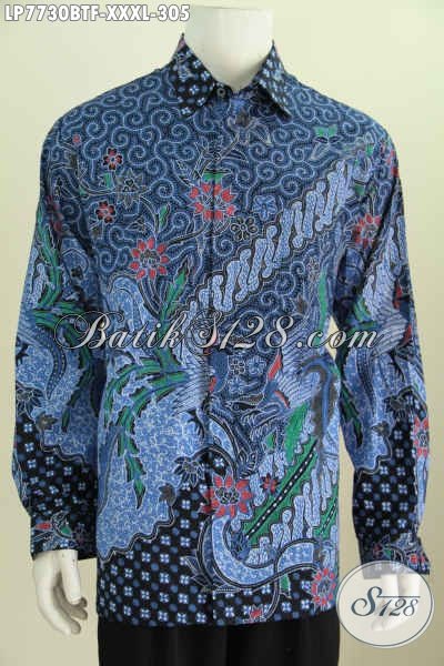 Baju Kemeja Batik Warna Biru, Busana Batik 4L Bahan Halus Lengan Panjang Full Furing Exclusive Untuk Pria Gemuk Sekali [LP7730BTF-XXXL]