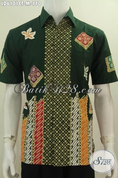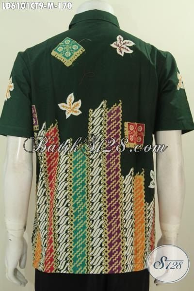 Baju Kemeja Batik Warna Hijau Motif Terkini, Pakaian Batik Istimewa Model Lengan Pendek Bahan Halus Proses Cap Tulis Ukuran M Buat Pria Muda Tampil Lebih Gaya Dan Gaul [LD6101CT-M]