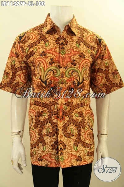 Baju Kemeja Kerja Pria Model Lengan Pendek Motif Mewah, Busana Batik Printing Solo Kwalitas Bagus Bahan Halus Dan Tidak Luntur, Cocok Juga Buat Kondangan [LD11327P-XL]