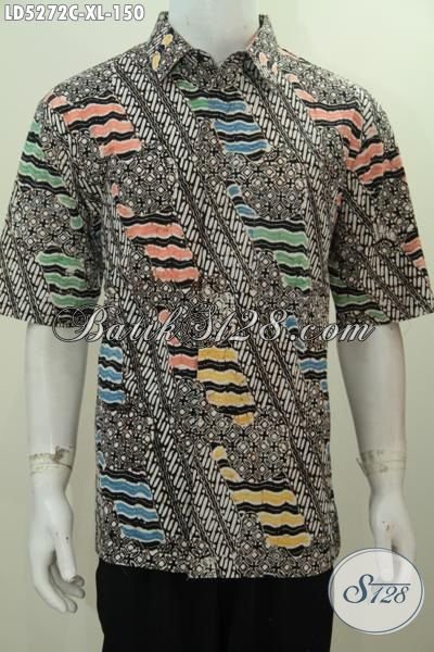 Baju Keren Lengan Pendek Untuk Pria Dewasa, Busana Batik Motif Berkelas Dengan Warna Modern Nan Trendy Bagus Untuk Kegiatan Sehari-Hari, Batik Solo Proses Cap [LD5272C-XL]