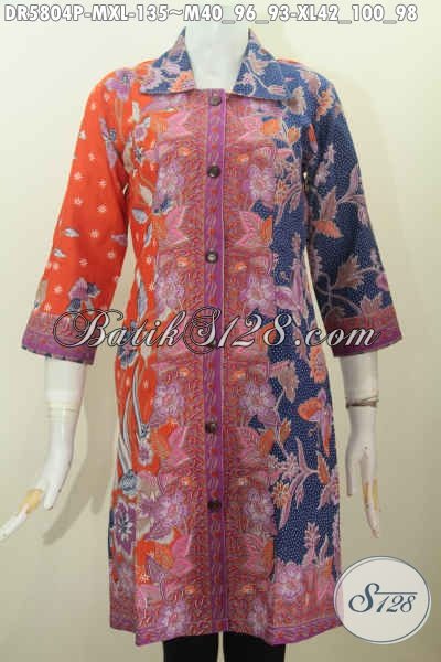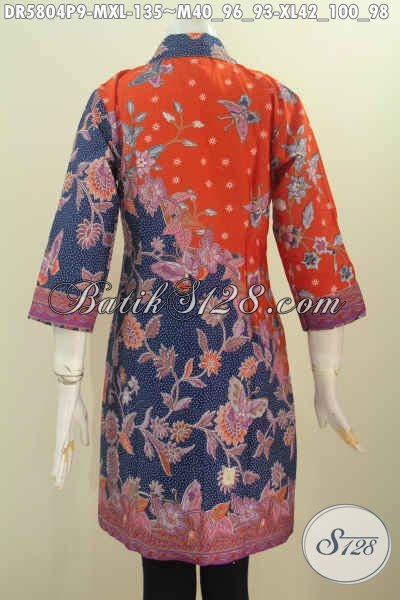 Baju Keren Untuk Wanita Karir, Dress Batik Pagi Sore Nan Istimewa Buatan Solo Motif Berkelas Proses Printing Tampil Modis Dan Mempesona [DR5804P-M , XL]