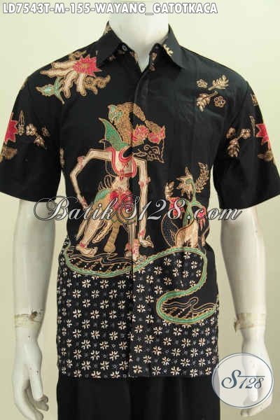 Baju Kerja Batik Lengan Pendek Motif Wayang Gatotkaca, Kemeja Batik Tulis Solo Harga Sangat Terjangkau [LD7543T-M]