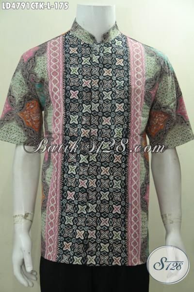 Baju Kerja Batik Model Kerah Shanghai, Kemeja Batik Modis Buatan Solo Cap Tulis Halus Tampil Berkelas [LD4791CTK-L]
