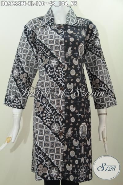 Baju Kerja Batik Wanita Dewasa, Dress Batik Kerah Lancip Model Terbaru Berbahan Halus Proses Kombinasi Tulis Bikin Penampilan Makin Cetar Membahana [DR3933BT-XL]