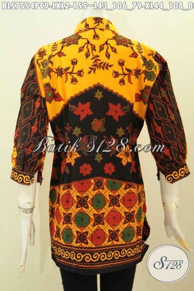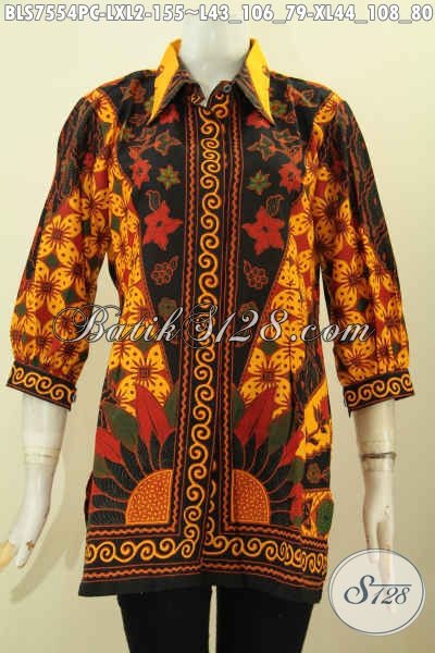 Baju Kerja Wanita Bahan Batik Printing, Blus Pastion Pakai Kerah Dengan Lengan Paspol Kwalitas Istimewa, Tampil Gaya Dan Anggun [BLS7554PC-L , XL]