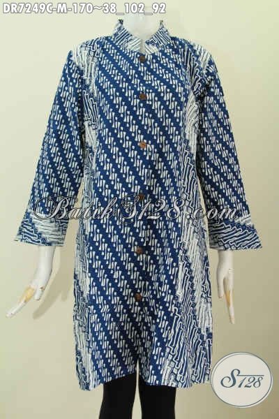 Baju Kerja Wanita Karir, Dress Batik Kombinasi Dua Warna Kwalitas Bagus Proses Cap Motif Elegan Model Kerah Shanghai Harga 170K [DR7249C-M]