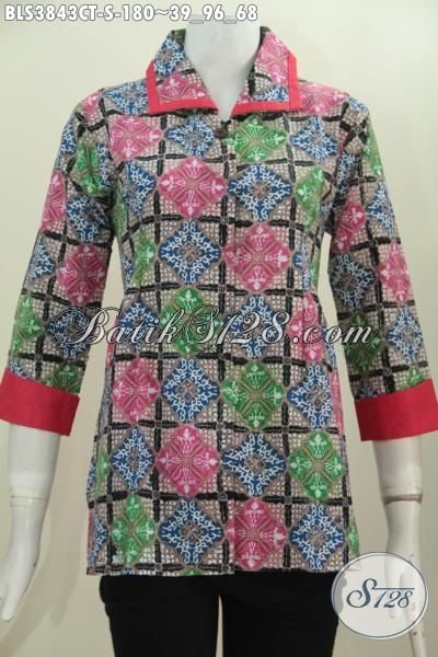 Baju Kerja Wanita Muda Dan Remaja Putri, Berbahan Batik Cap Tulis Motif Trendy Model Plisir Kerah Polos Trend Terbaru Bikin Penampilan Semkain Kece [BLS3843CT-S]