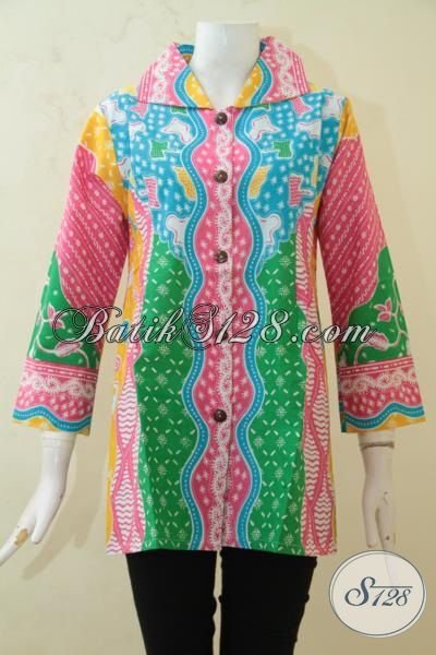 Baju Printing Batik Model Elegan Berpadu Motif Bagus Dengan Warna Yang Keren, Busana Blus Batik Perempuan Masa Kini Tampil Cantik Bertubi-Tubi [BLS3229P-M]