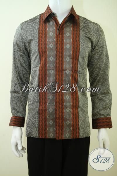 Baju Tenun Abu-Abu Model Lengan Panjang Kwalitas Premium, Hem Tenun Mewah Full Furing Membuat Cowok Lebih Gagah Berkarakter [LP3425NF-M]