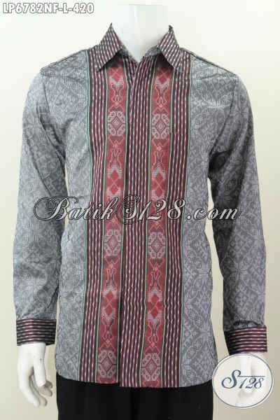 Baju Tenun Halus Warna Abu-Abu Berpadu Motif Garis Nan Mewah, Kemeja Tenun Lengan Panjang Full Furing Tampil Gagah Dan Berwibawa [LP6782NF-L]