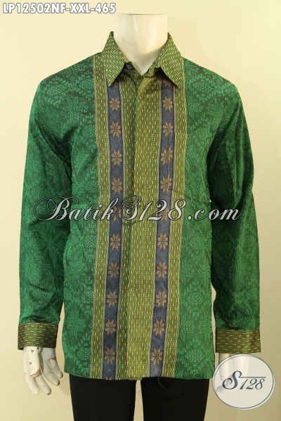 Baju Tenun Istimewa Warna Hijau Big Size, Kemeja Tenun Kwalitas Premium Motif Tren Masa Kini Daleman Full Furing, Penampilan Pria Gemuk Lebih Berkelas [LP12502NF-XXL]