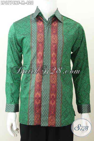 Baju Tenun Istimewa Warna Hijau Dengan Motif Berkelas, Kemeja Tenun Lengan Panjang Full Furing Untuk Pria Muda Tampil Mewah Dan Rapi [LP6774NF-M]