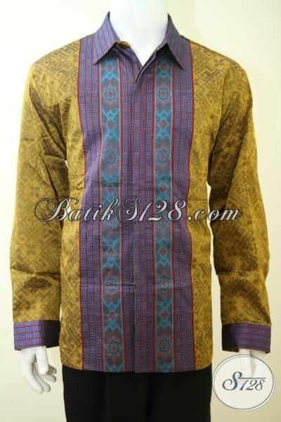 Baju Tenun Lengan Panjang Warna kuning dengan Motif Garis Keren Dan Mewah, Pakaian Tenun Masa Kini Full Furing Pria Bisa Tampil Modis Dan Rapi [LP3434NF-XL]