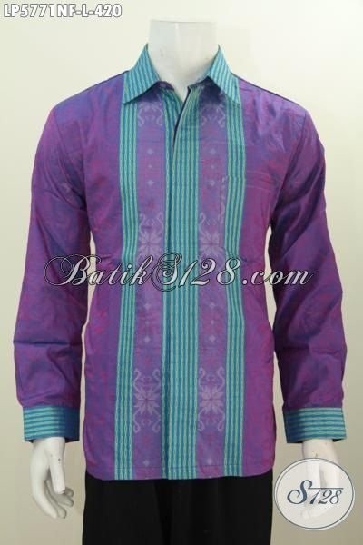 Baju Tenun Ungu Dengan Kombinasi Garis-Garis Menambah Kesan Eksklusif, Hem Tenun Lengan Panjang Full Furing Pria Tampil Modis Dan Berkelas [LP5771NF-L]