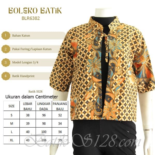 Balero Batik Desain Terkini, Busana Batik Wanita Masa Kini Motif Elegan Cocok Untuk Kerj Dan Acara Santai Bahan Halus Proses Printing Daleman Full Furing [BLR6382PF-S, M , L , XL]