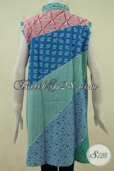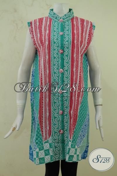 Balero Batik Hijau Kombinasi Biru Dan Merah Tanpa Lengan, Pakaian Batik Masa Kini Proses Print Kwalitas Halus Harga 100 Ribuan [BLR3359P-All Size]