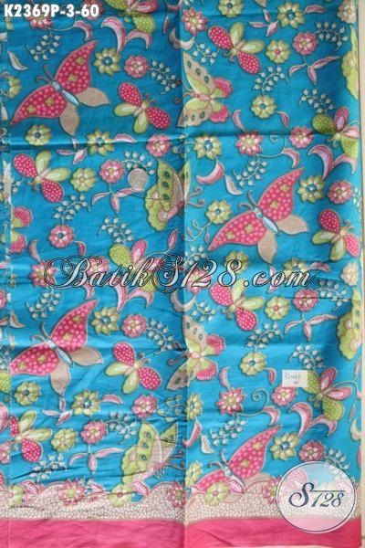 Bati Kain Motif Bunga Dan Kupu Berpadu Warna Dasar Biru Nan Trendy, Batik Printing Istimewa Buatan Solo Untuk Bahan Pakaian Santai Buat Pesta Dan Hangout Tampil Lebih Bergaya [K2369P-200x110cm]