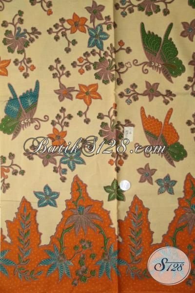 Batik Bahan Kemeja Berkelas Warna Soft, Batik Solo Motif Bunga Dan Kupu Membuat Penampilan Cowok Semakin Gagah Dan Tampan [K1976PL-240 X 105 cm]