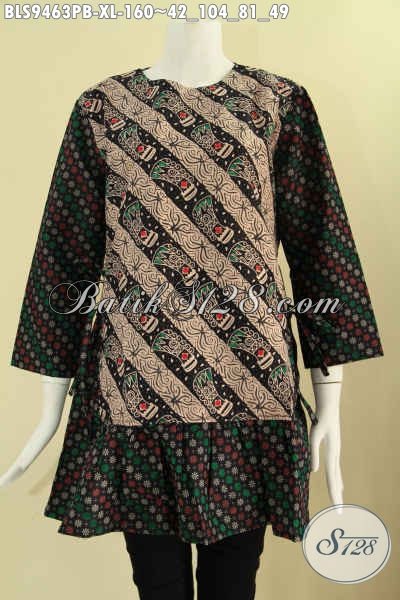Batik Blouse Buatan Solo Asli Dengan Kombinasi 2 Motif, Baju Batik Keren Model Resleting Belakang Lengan 7/8 Dan Bertali Di Bagian Pinggang Kanan Kiri, Bikin Penampilan Lebih Istimewa [BLS9463PB-XL]