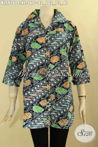 Batik Blouse Istimewa Motif Parang Bunga, Busana Batik Wanita Dewasa Warna Berkelas Jenis Cap Bahan Halus Nyaman Di Pakai, Tampil Lebih Gaya Dan Mempesona [BLS9160C-XL]