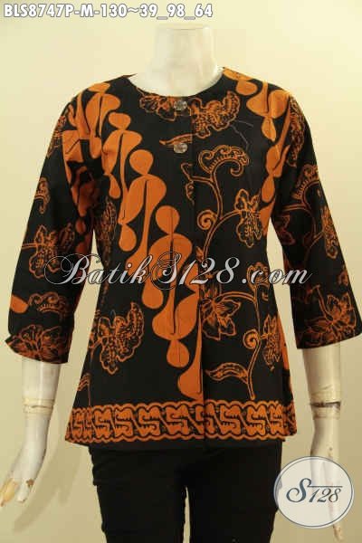 Batik Blouse Lengan 7/8 Tanpa Kerah, Busana Batik Kerja Desain Kancing Depan Motif Bagus Dan Elegan Proses Printing, Tampil Cantik Menawan [BLS8747P-M]