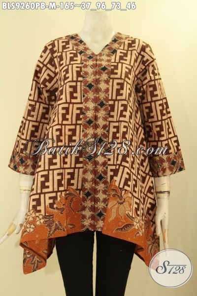 Batik Blouse Model A Dengan Kerah V Berpadu Motif Kekinian Nan Berkelas, Pakaian Batik Wanita Muda Lengan 7/8 Kancing Depan Kombinasi 2 Motif Cocok Untuk Seragam Kerja Maupun Ke Acara Resmi [BLS9260PB-M]
