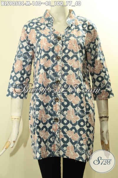 Batik Blouse Modis Motif Bunga Model Lengan 3/4 Di Lengkapi Kancing Depan, Baju Batik Proses Cap Nan Istimewa, Pas Buat Kerja Dan Santai [BLS9058C-M]