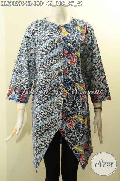 Batik Blouse Motif Elegan Klasik, Busana Batik Wanita Terbaru Lengan Panjang 7/8 Pakai Kancing Depan Bahan Halus Proses Cap, Istimewa Untuk Kerja Dan Acara Resmi Hanya 160K [BLS9029C-XL]
