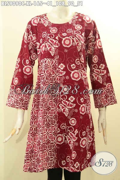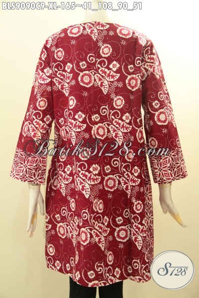 Batik Blouse Solo Istimewa Warna Merah Motif Bagu Lengan Panjang Dengan Resleting Belakang, Penampilan Makin Cantik Menawan [BLS9090C-XL]