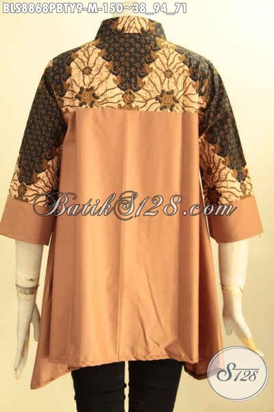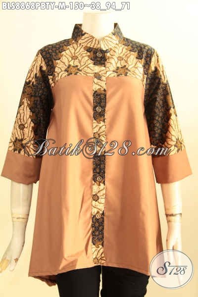 Batik Blouse Trendy Dengan Kombinasi Kain Katun Polos Toyobo, Busana Batik Kekinian Untuk Wanita Muda Tampil Cantik Dan Gaya Dengan Kerah Shanghai [BLS8868PBTY-M]