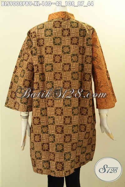 Batik Blouse Wanita Dewasa Ukuran XL, Hadir Dengan Kombinasi 2 Motif Dan 2 Warna Elegan Berkelas Proses Printing Cabut, Pakaian Batik Istimewa Lengan 3/4 Yang Menunjang Penampilan Anggun Dan Cantik Menawan [BLS9008PB-XL]