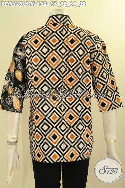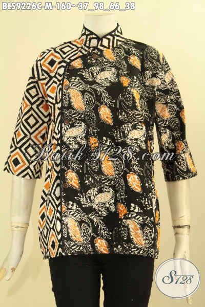 Batik Blouse Wanita Muda Desain Terbaru Dengan Kerah Shanghai Lengan 3/4 Motif Kekinian, Baju Batik Kerja Kombinasi Plesir Polos Pakai Kancing Depan Hanya 100 Ribuan [BLS9226C-M]
