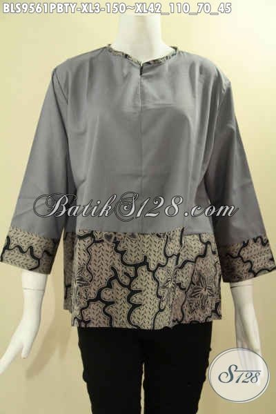Batik Blouse Wanita Untuk Kerja Dan Jalan-Jalan, Busana Batik Istimewa Kombinasi Kain Polos Katun Toyobo Model Resleting Depan Tanpa Krah Lengan 7/8, Penampilan Lebih Stylish [BLS9561PBTY-XL]