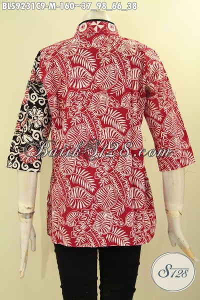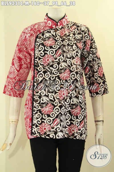 Batik Blouse Wanita Untuk Seragam Kerja Dan Acara Resmi Tampil Cantik Menawan, Hadir Dengan Model Kerah Shanghai Kombinasi Plesir Polos Lengan 3/4 Kancing Depan [BLS9231C-M]