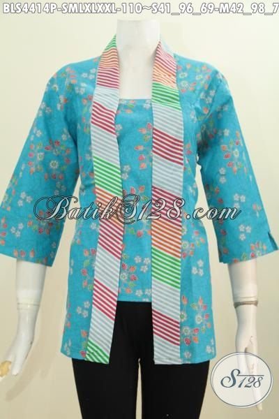 Batik Blus Biru Muda Model Kartini, Jual Online Produk Terbaru Baju Batik Wanita Kutu Baru Desain Mewah Bahan Bagus Harga Murmer Proses Printing [BLS4414P-S , M , L , XL , XXL]