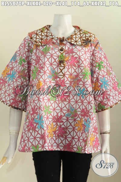 Batik Blus Buatan Solo, Pakaian Batik Terbaru Model Kerah Bulat Dengan Motif Trendy Proses Printing, Bisa Untuk Kerja Dan Jalan-Jalan [BLS5870P-XL , XXL]