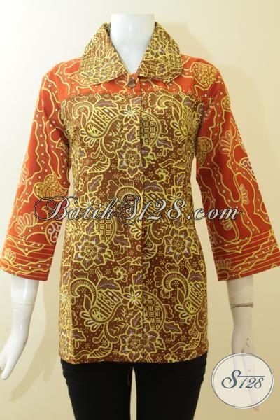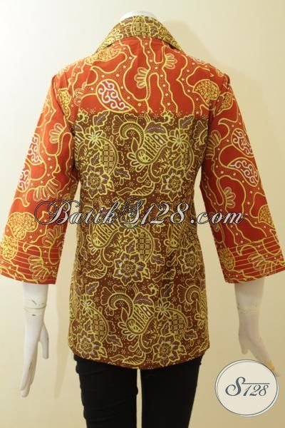 Batik Blus Cap Tulis, Busana Batik Cewek Lengan Tujuh Perdelapan, Pakaian Batik Halus Kwalitas Halus Desain Mewah [BLS2961CT-M]