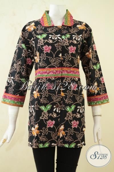 Batik Blus Cap Tulis Keren Ukuran M, Busana Trendy Dasa Hitam Motif Bunga Model Paling Laku Saat Ini [BLS3285CT-M]